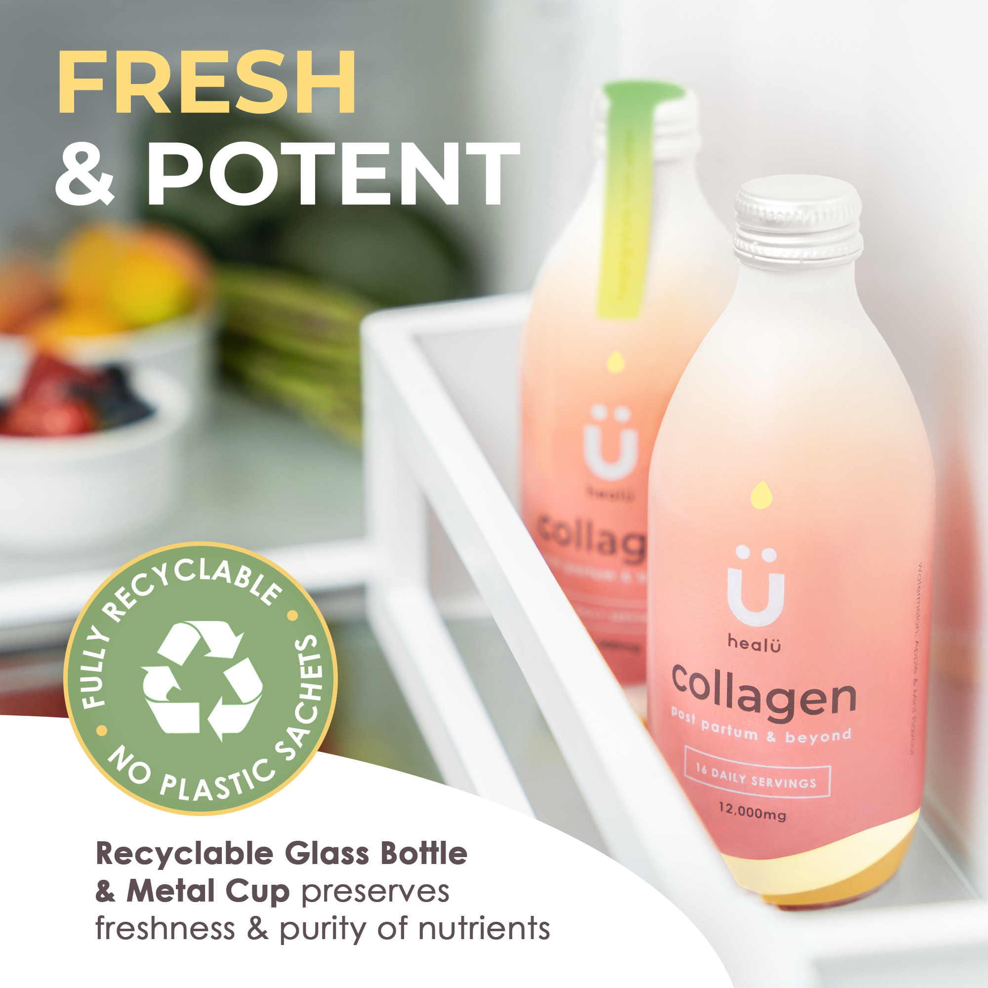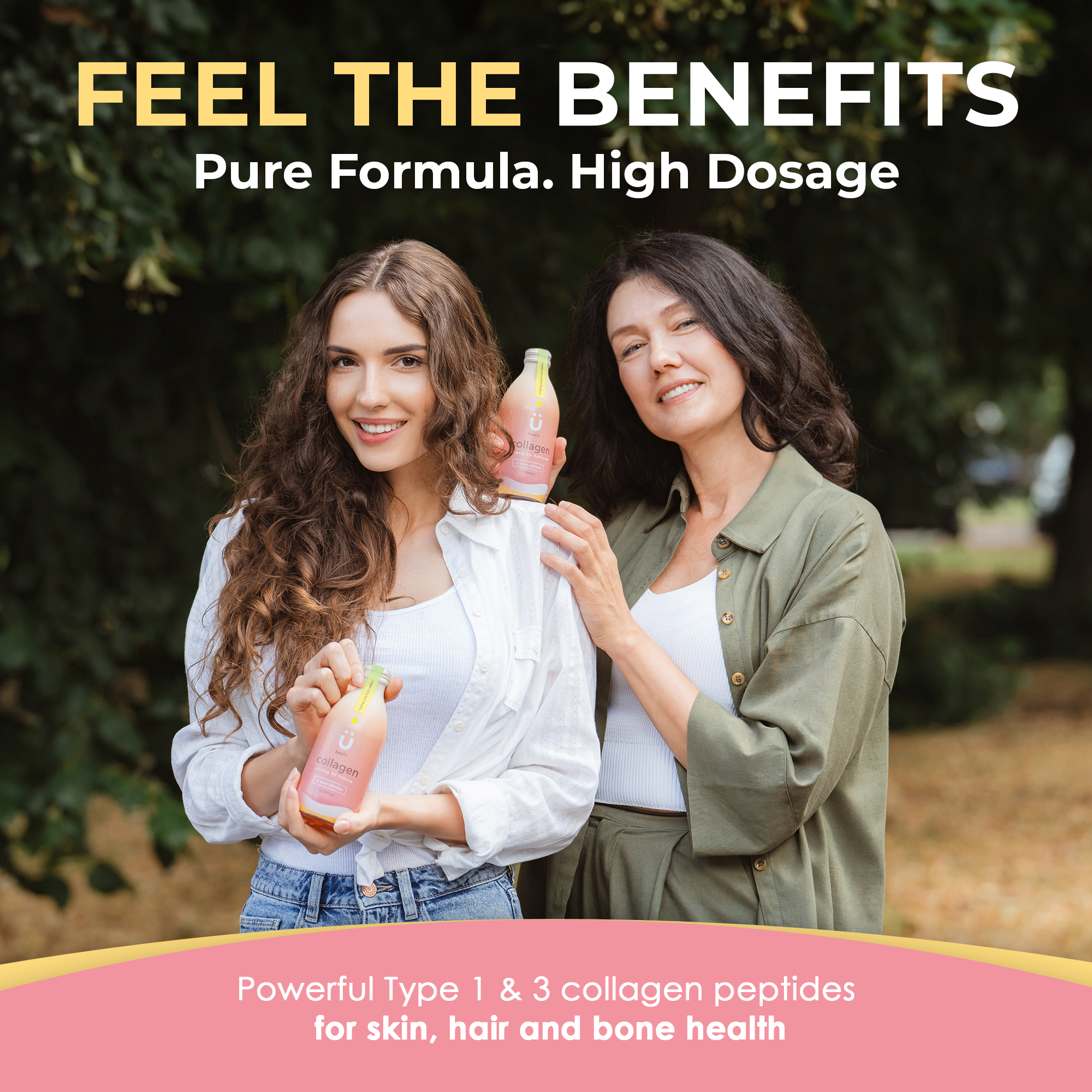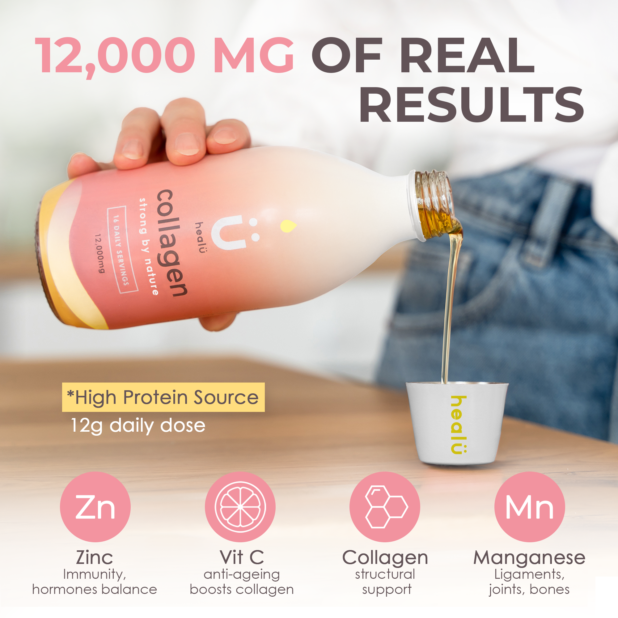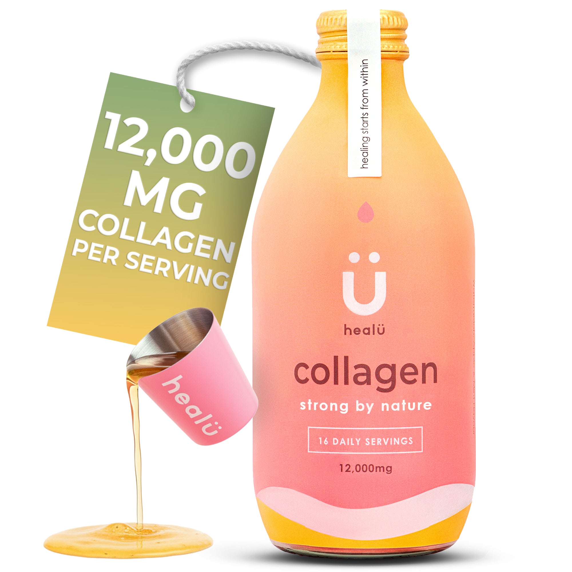STRONG BY NATURE – HealU collagen shots deliver 12,000mg hydrolyzed peptides and 12g protein per serving. Powered by Type 1 & 3 bovine collagen for full-body strength, resilience, and radiance.